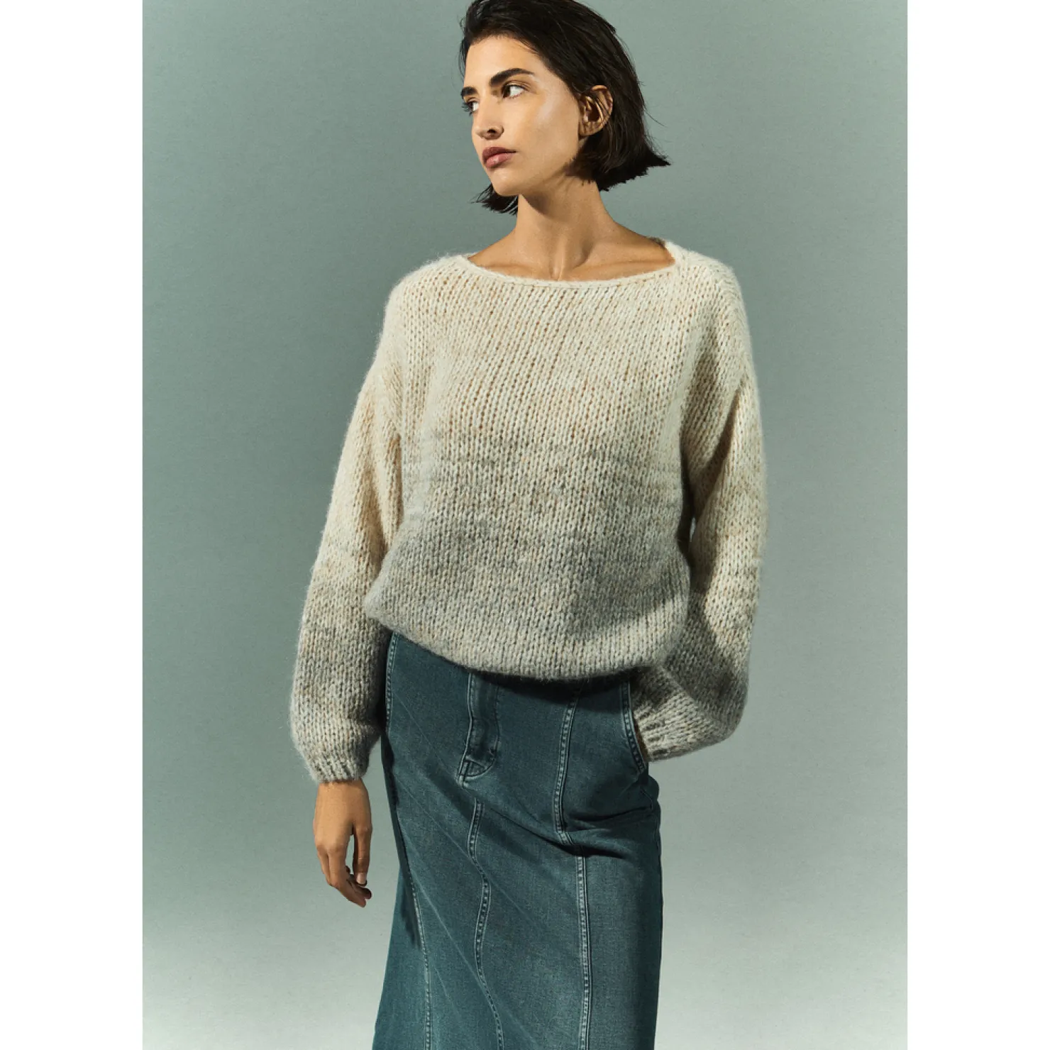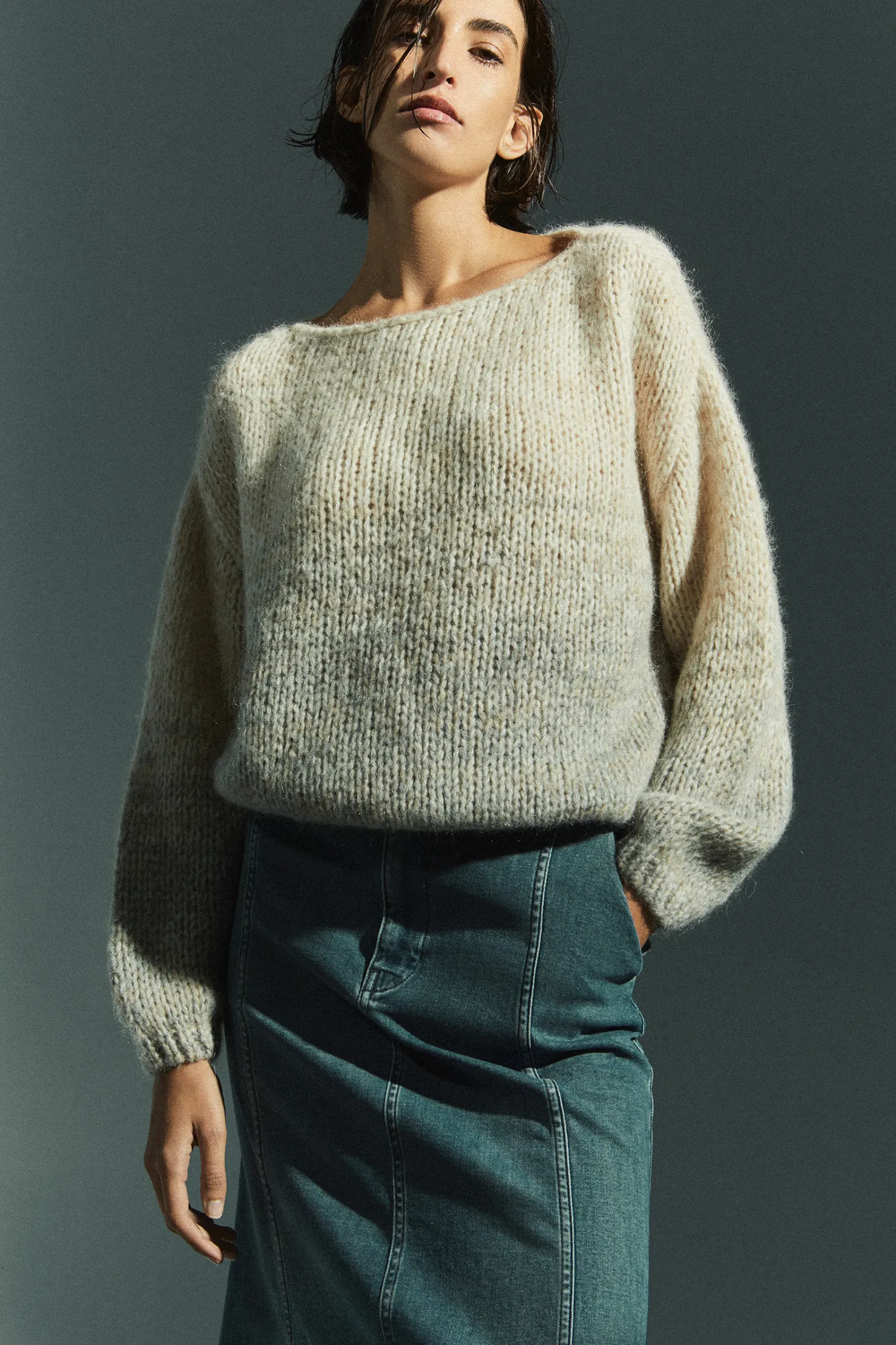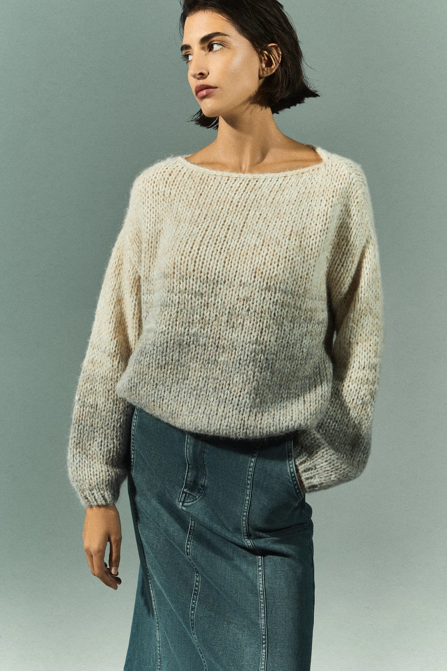 Ingebreide gradientGeribbelde boordWijde, ¾ mouwenOversized fit