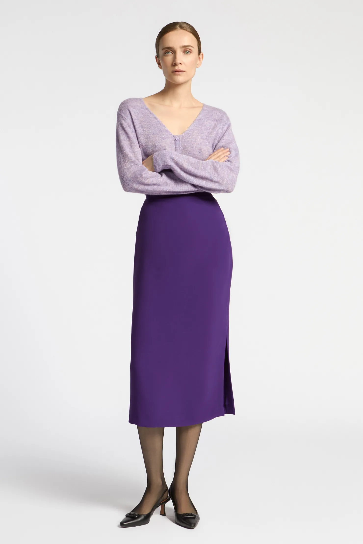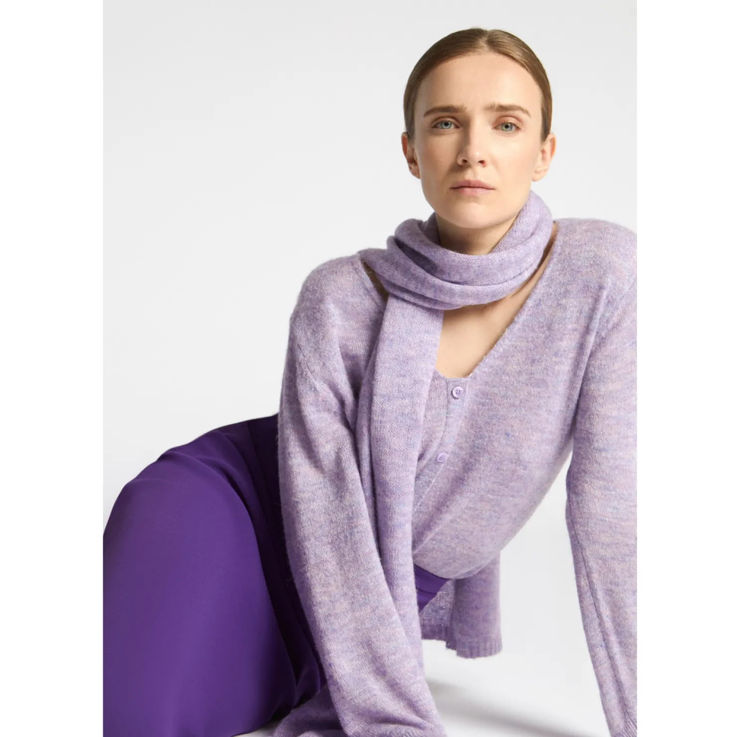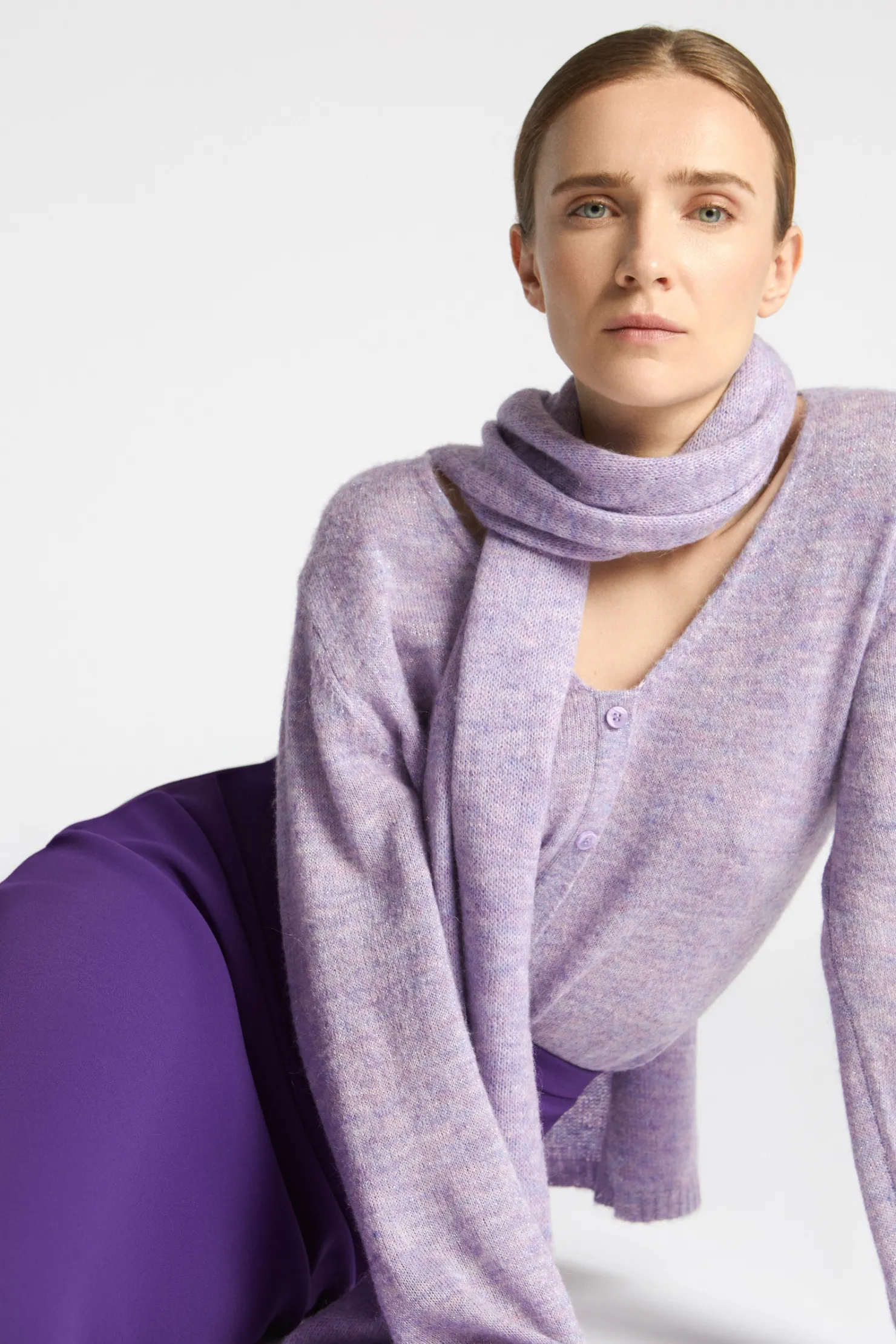Mohairmix Subtiele lurex Valse knopenrij Vrouwelijke V-hals
