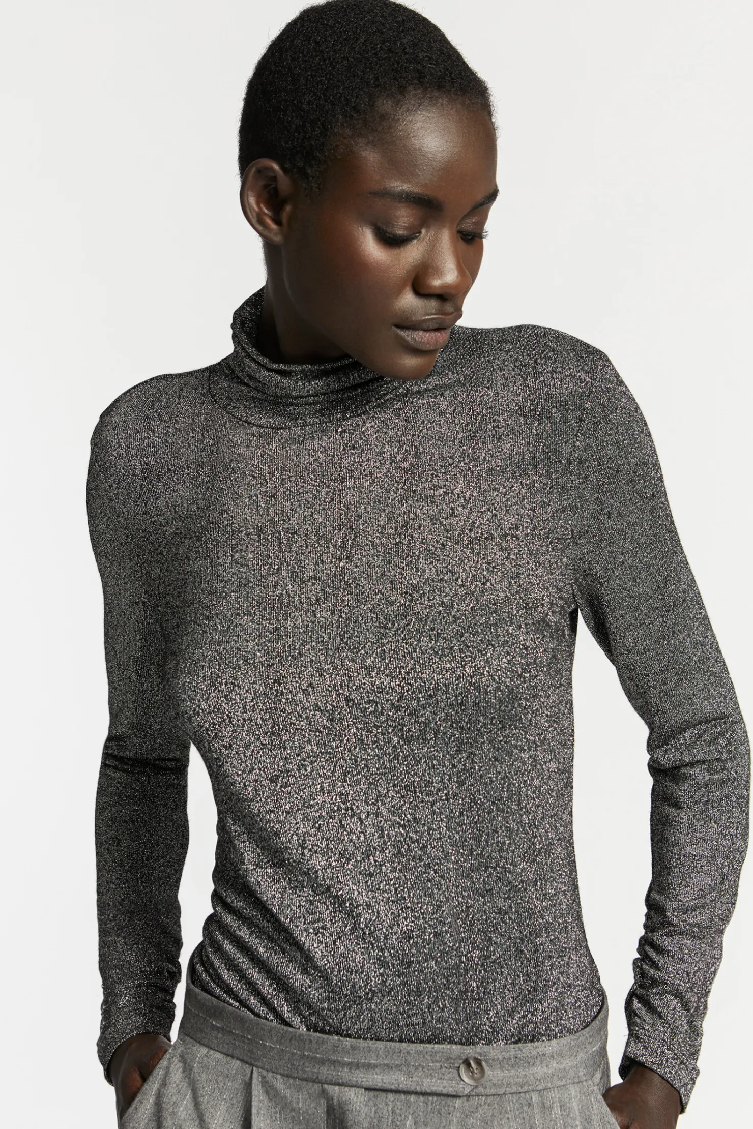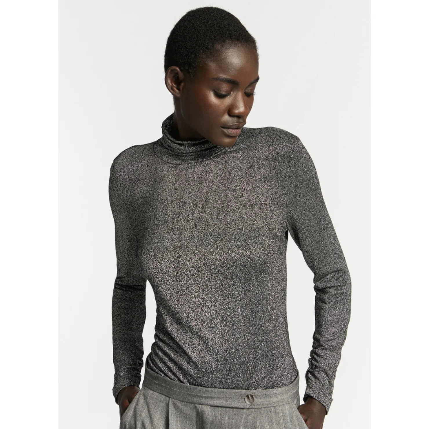 Opgestroopt effect aan de mouwen Stof met lurex Opstaande coll