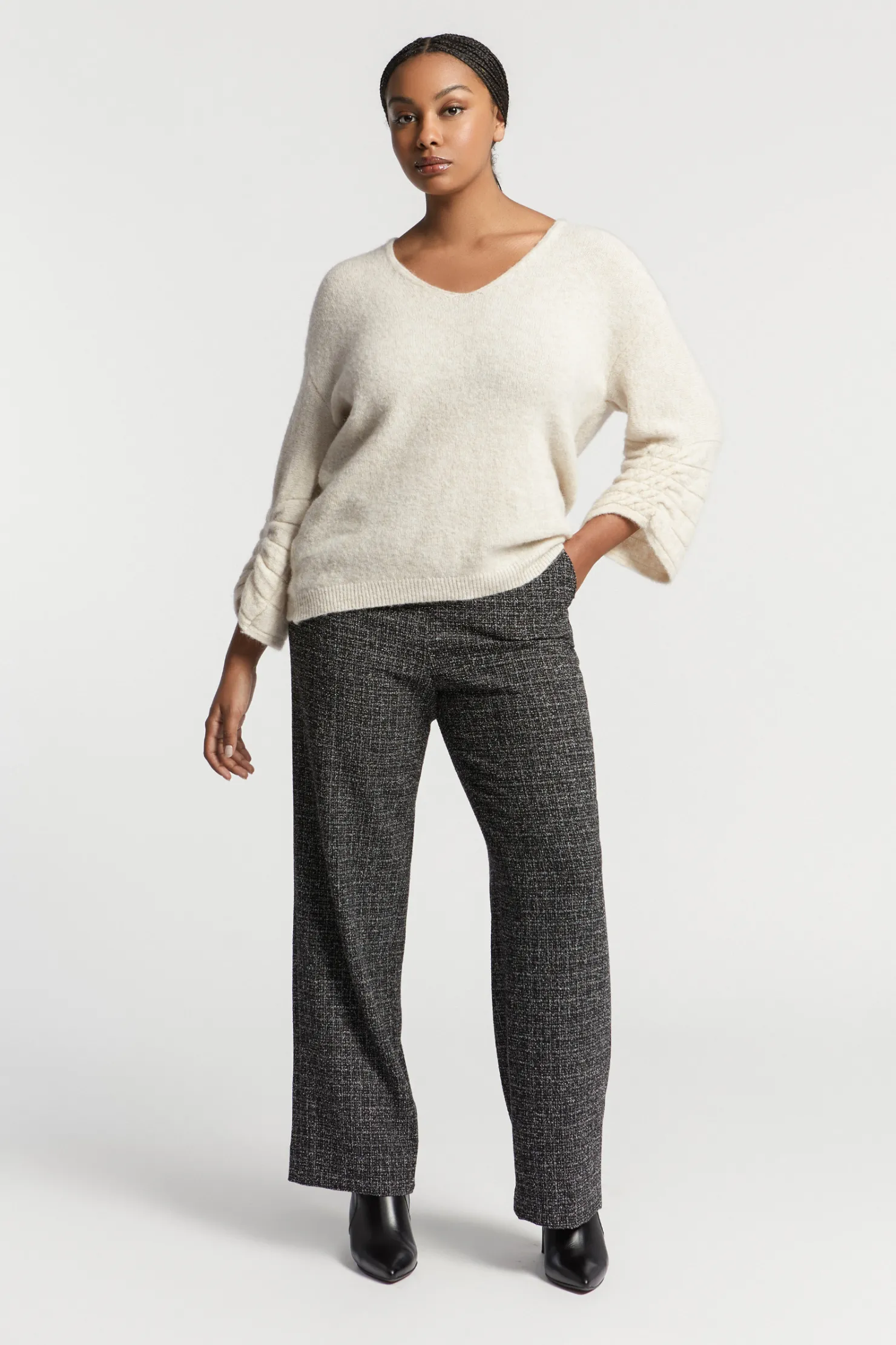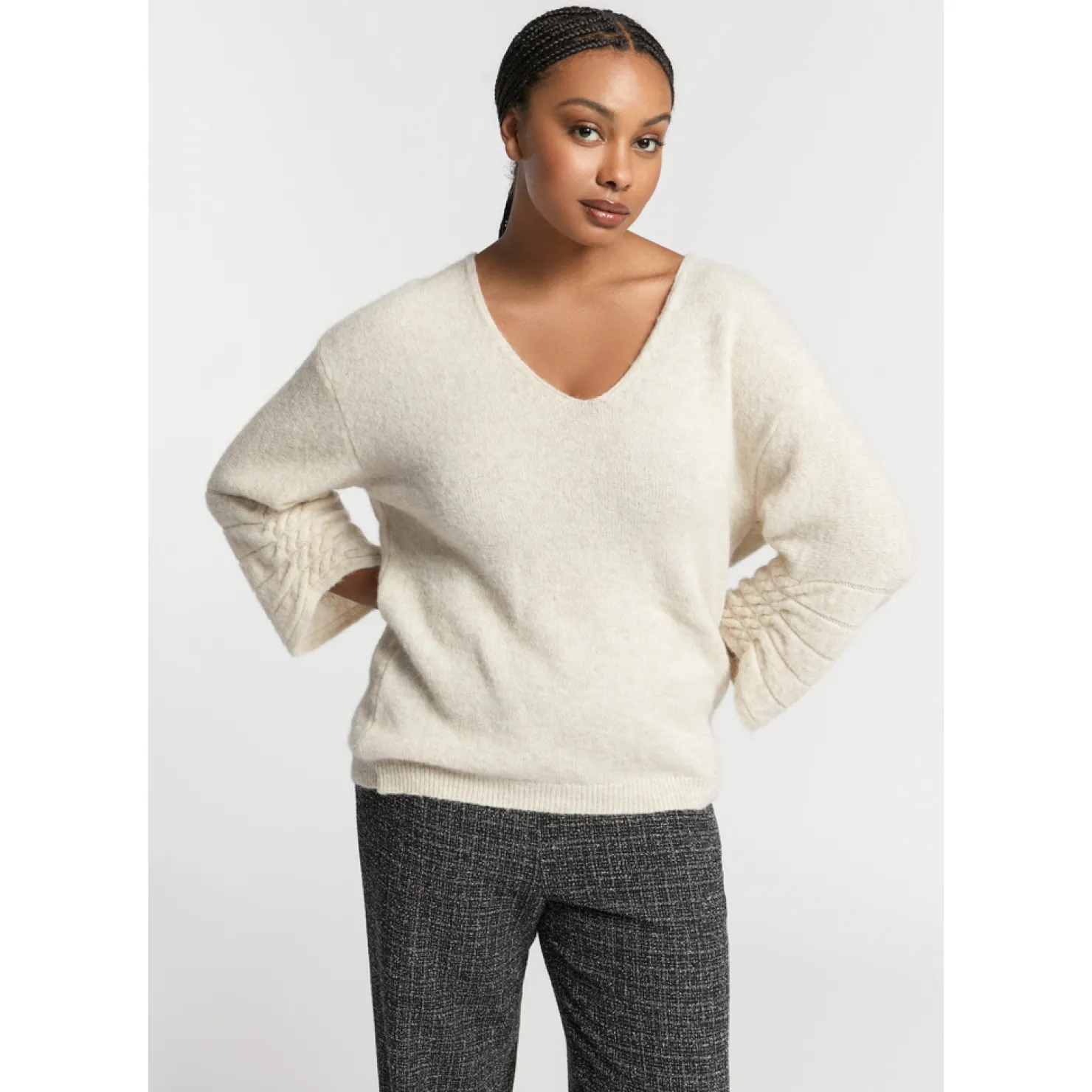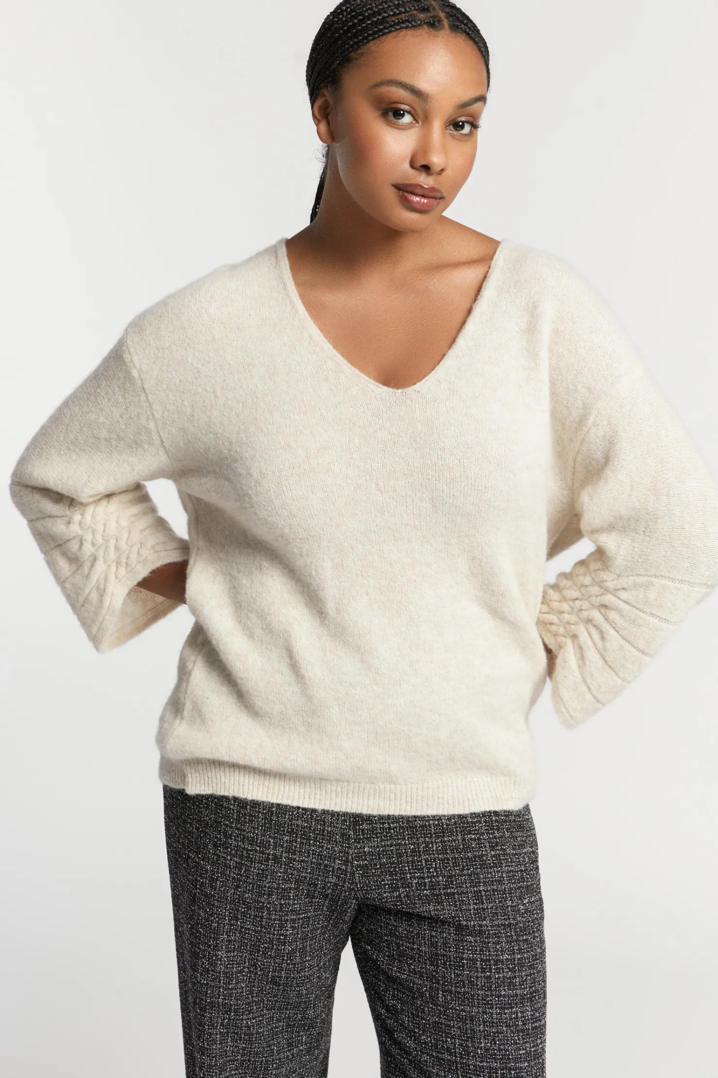 Vrouwelijke V-hals Met heerlijk zachte alpacawol 3/4 mouw met kabelsteek