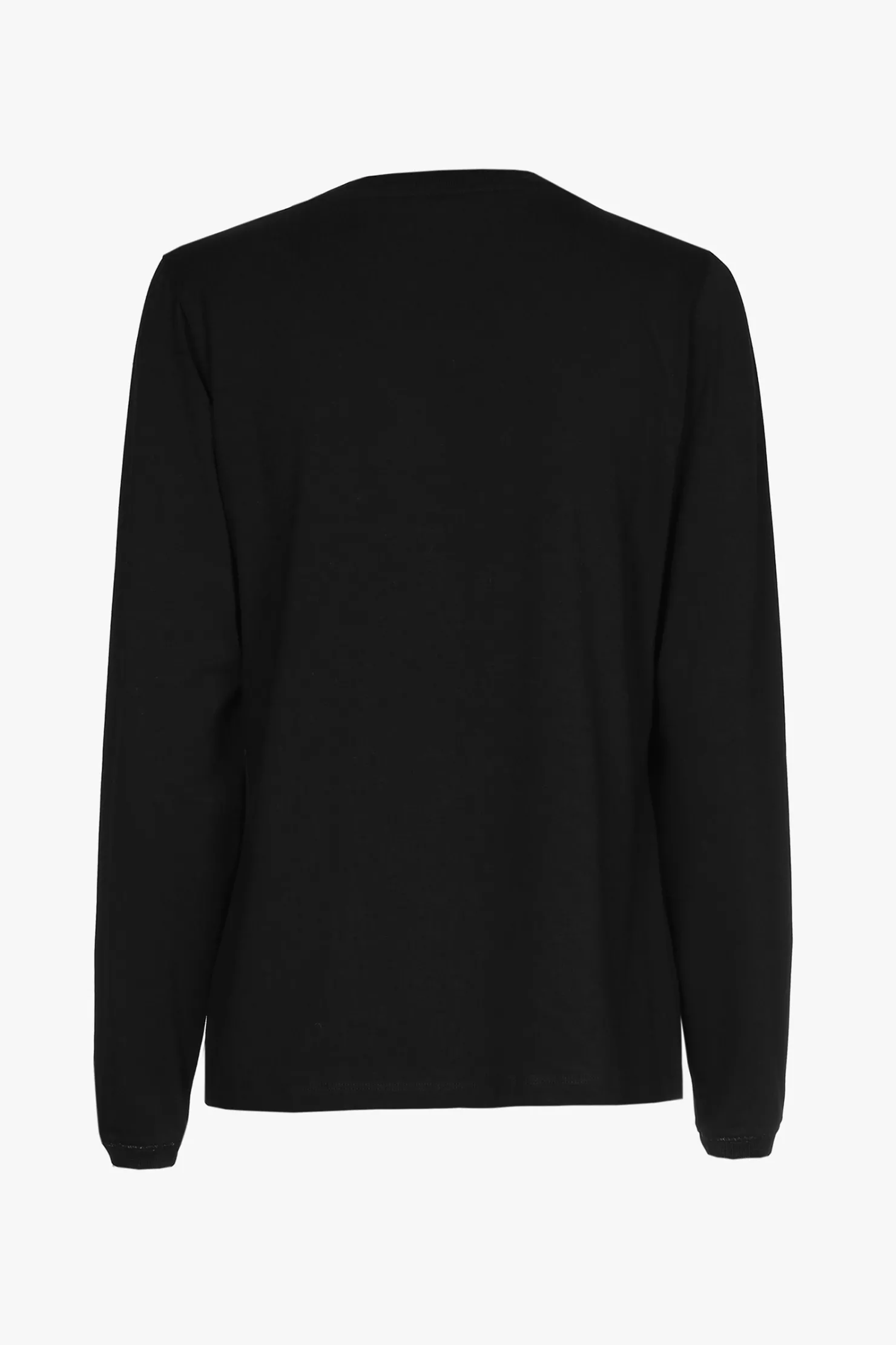 DAMES Xandres Zwart T-shirt met V-hals en lange mouwen
